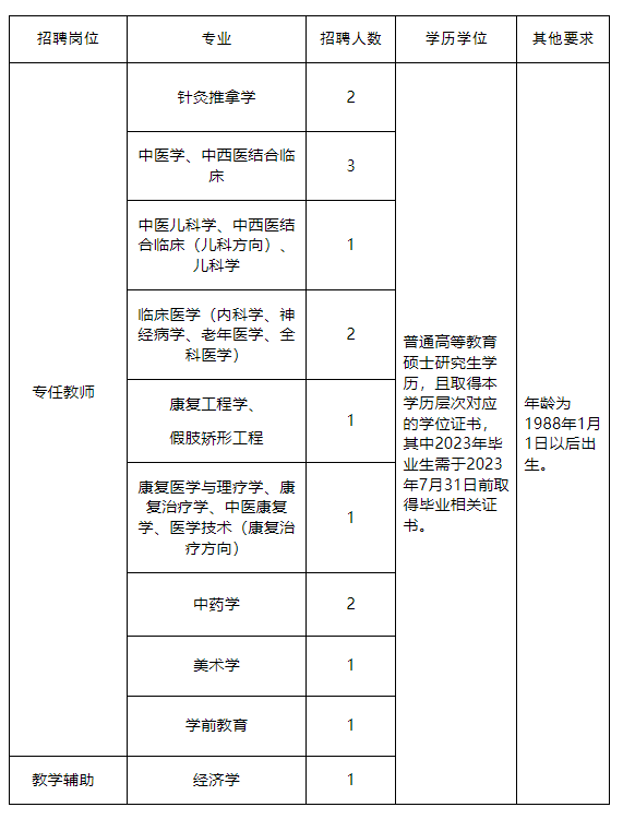 本次招聘工作人員15名,詳見《河南推拿職業學院2023年公開招聘工作人員崗位信息表》。
