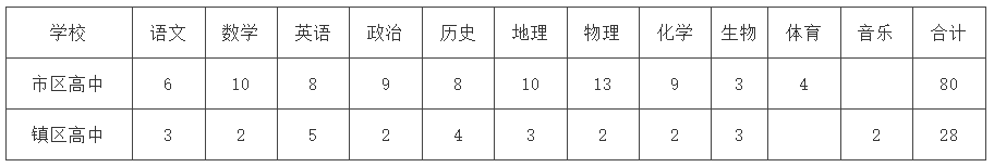 本次計(jì)劃招聘高中教師108名,均為財(cái)政全供事業(yè)單位編制,崗位類別為專業(yè)技術(shù)崗位。具體學(xué)科(崗位)如下: