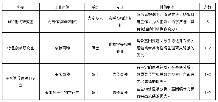 根據科研工作需要,河南省農業科學院糧食作物研究所擬招聘科研輔助人員,相關要求如下:
