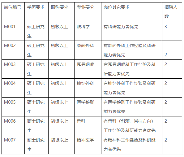 本次招聘Meige綜合征診療中心專業技術人員共15人,具體崗位詳見附件《河南省直第三人民醫院Meige綜合征診療中心招聘崗位一覽表》。