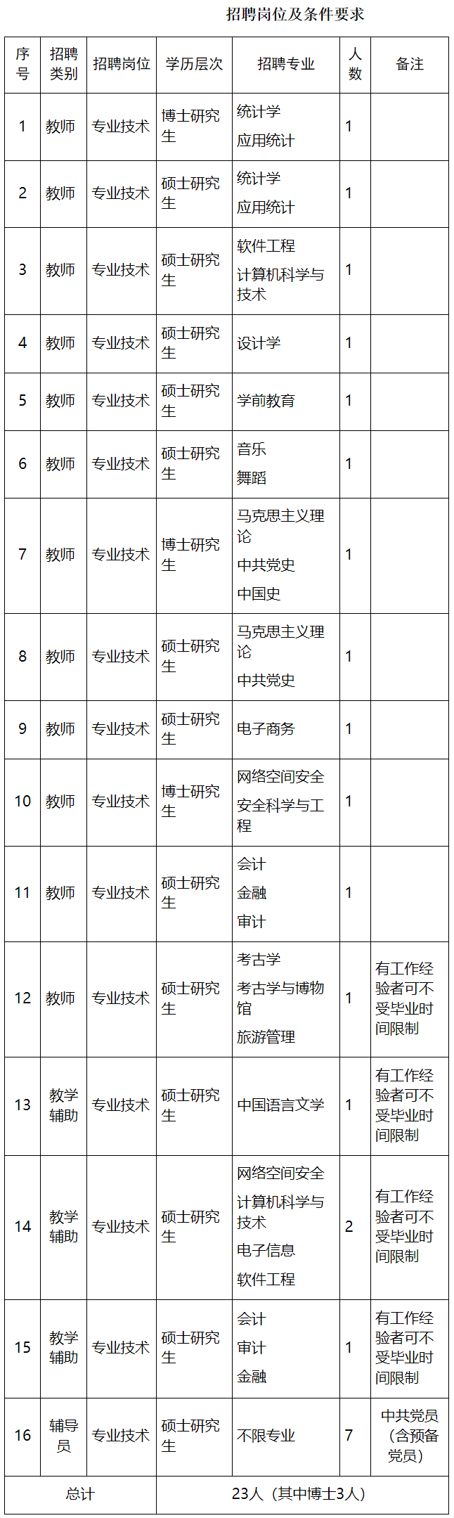 河南信息統計職業學院2023年公開招聘工作人員方案