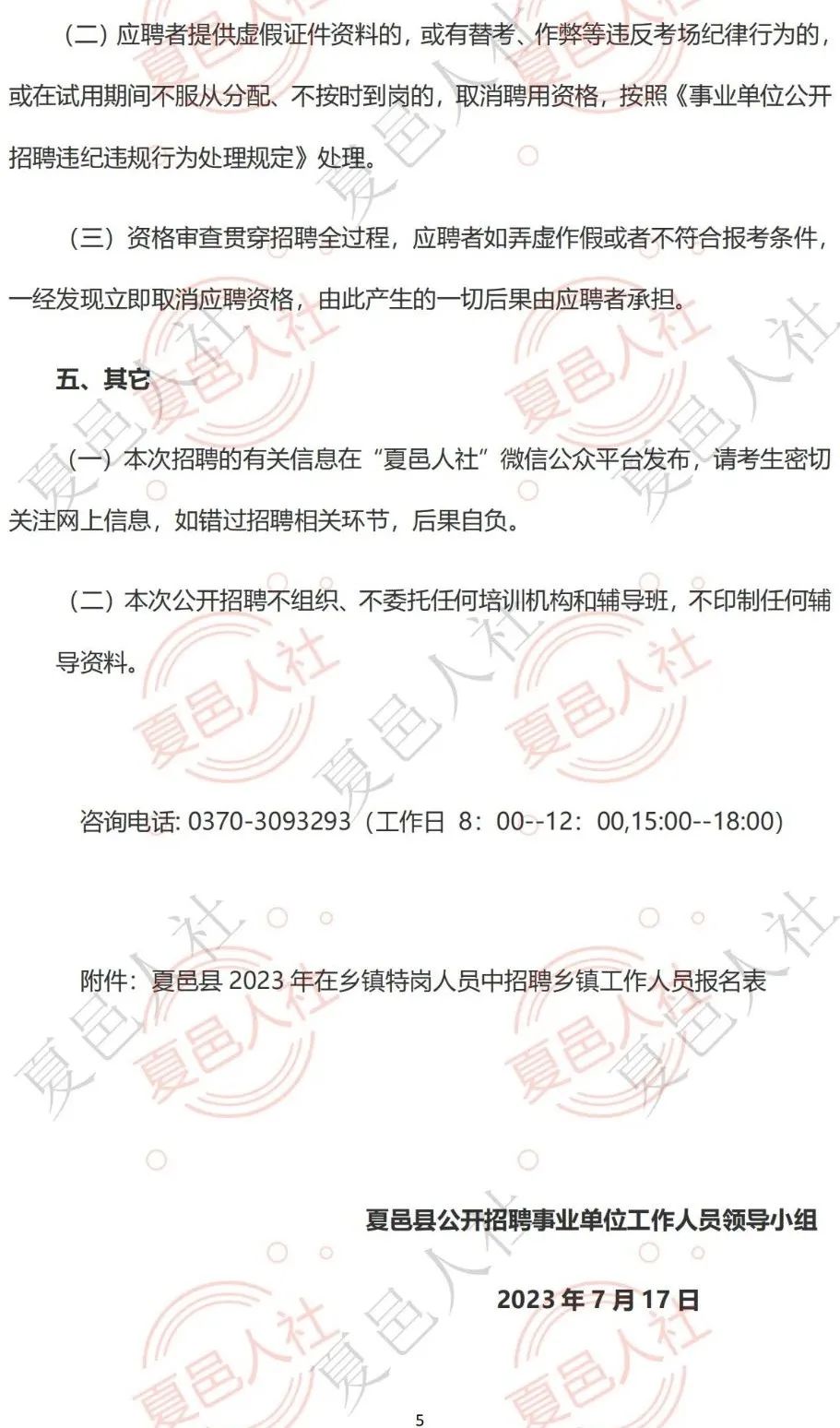 夏邑縣2023年關于在鄉鎮特崗人員中招聘鄉鎮工作人員公告