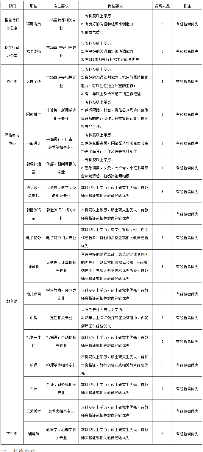 2、品德良好,責任心強。具有團隊協作精神,服從學校工作安排,熱愛教育事業,具備較強的專業技能水平。