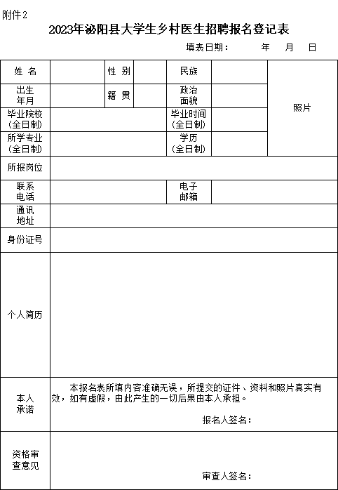 附件:2023年泌陽縣大學生鄉村醫生招聘報名登記表