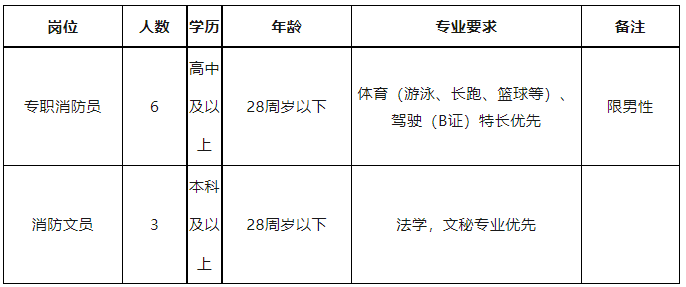 4、有體育特長、駕駛(B證)或從事過消防工作的人員、退伍軍人優先。