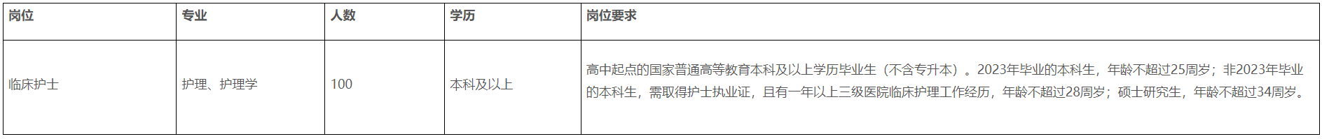 2. 報(bào)考人員年齡要求:2023年畢業(yè)的本科生,年齡不超過(guò)25周歲;取得護(hù)士執(zhí)業(yè)證,且有一年以上三級(jí)醫(yī)院臨床護(hù)理工作經(jīng)歷者,年齡不超過(guò)28周歲;碩士研究生,年齡不超過(guò)34周歲。