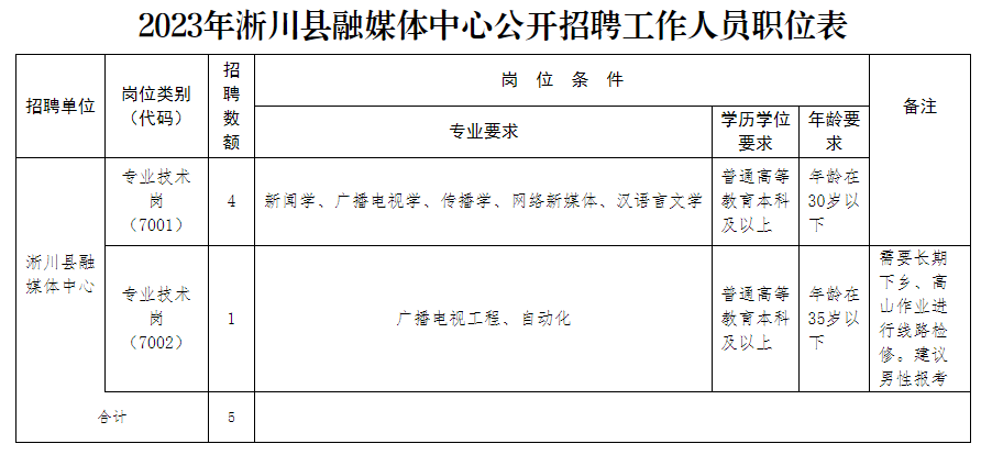 附件:1、2023年淅川縣融媒體中心公開招聘工作人員職位表