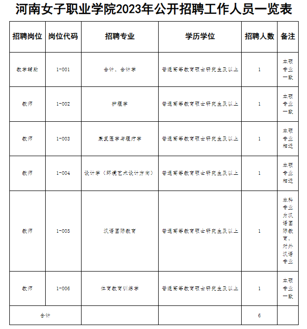 詳見附件《河南女子職業學院2023年公開招聘工作人員一覽表》。