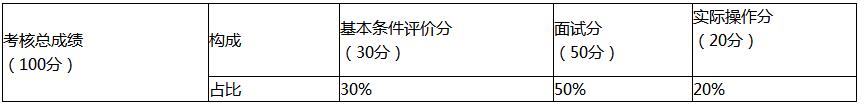 考核內容分為基本條件評價、面試和實際操作(專業技能測試)三部分,分值構成為: