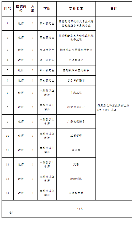 根據(jù)學校專業(yè)技術(shù)人員崗位空缺情況和學校發(fā)展需要,擬面向社會公開招聘6名碩士研究生和8名本科生(詳見附件)。