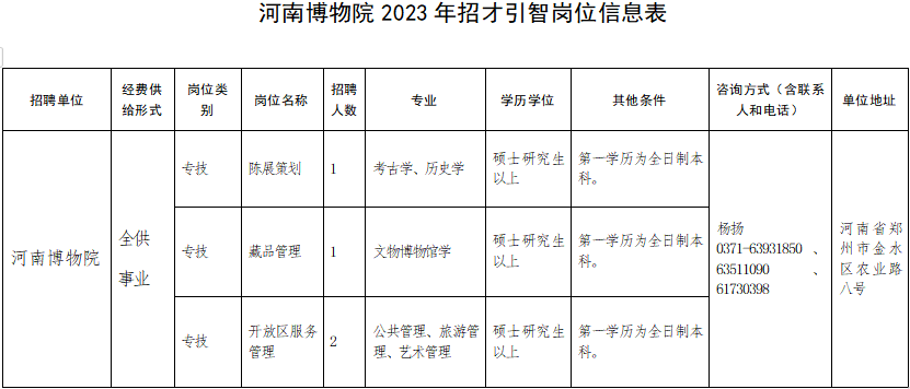 本次報名和資格審查工作由河南博物院招才引智工作領導小組負責組織實施,報名情況報省文化和旅游廳人事處備案。
