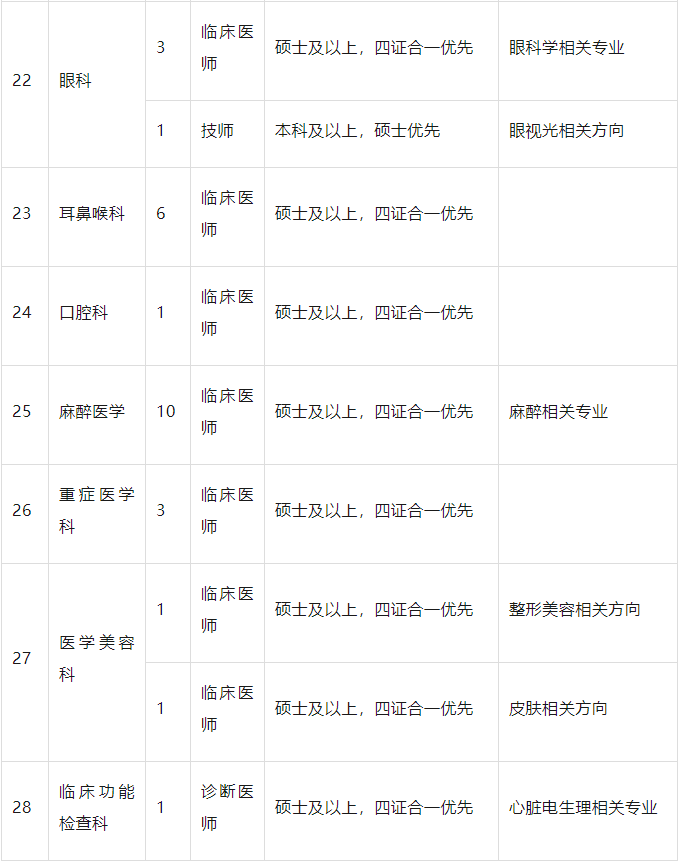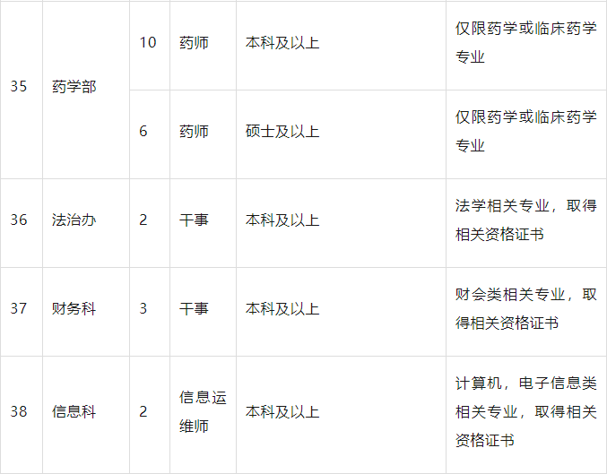 3、具備報(bào)考崗位所必需的基礎(chǔ)理論和專業(yè)知識(shí),符合相應(yīng)的學(xué)歷、學(xué)位以及其它要求,聘用后能按照醫(yī)院要求及時(shí)到崗工作;