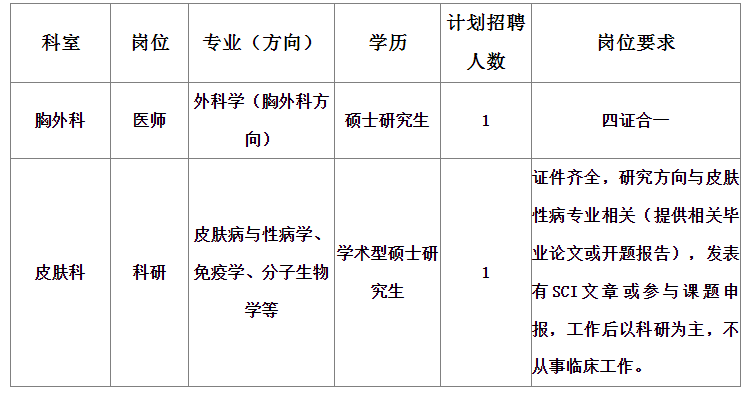 河南科技大學第二附屬醫院胸外科皮膚科公開招聘公告