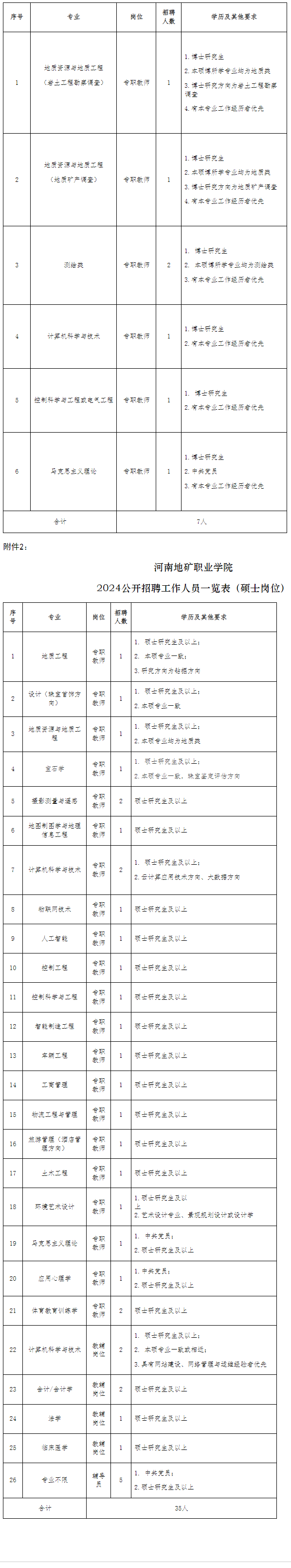 2.河南地礦職業學院2024公開招聘工作人員一覽表(碩士崗位)