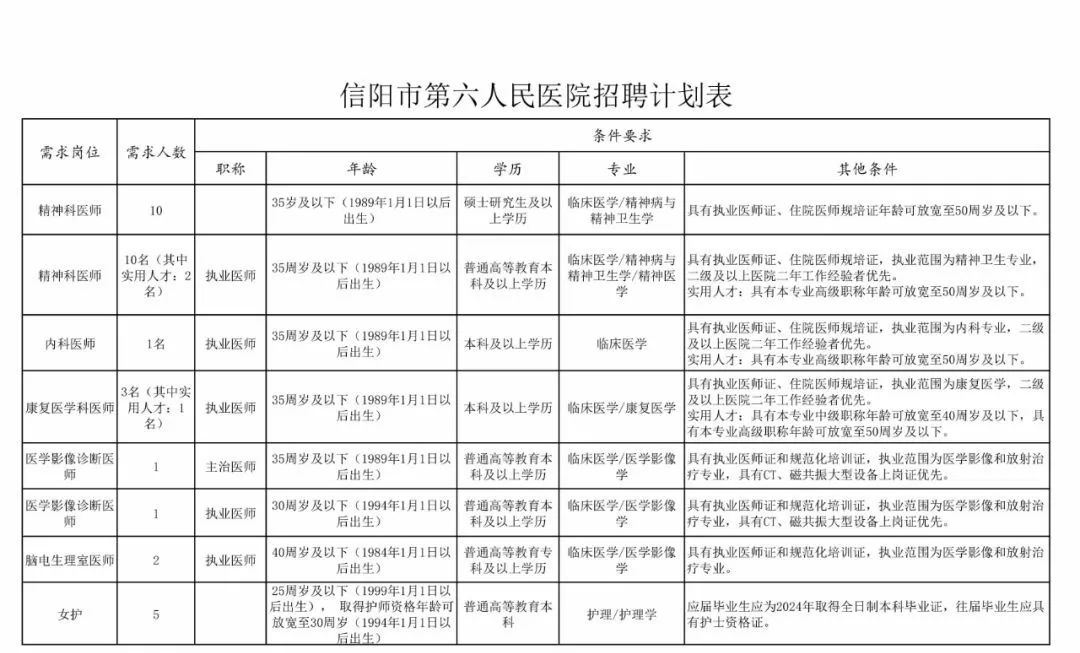 信陽市第六人民醫(yī)院招聘73名工作人員