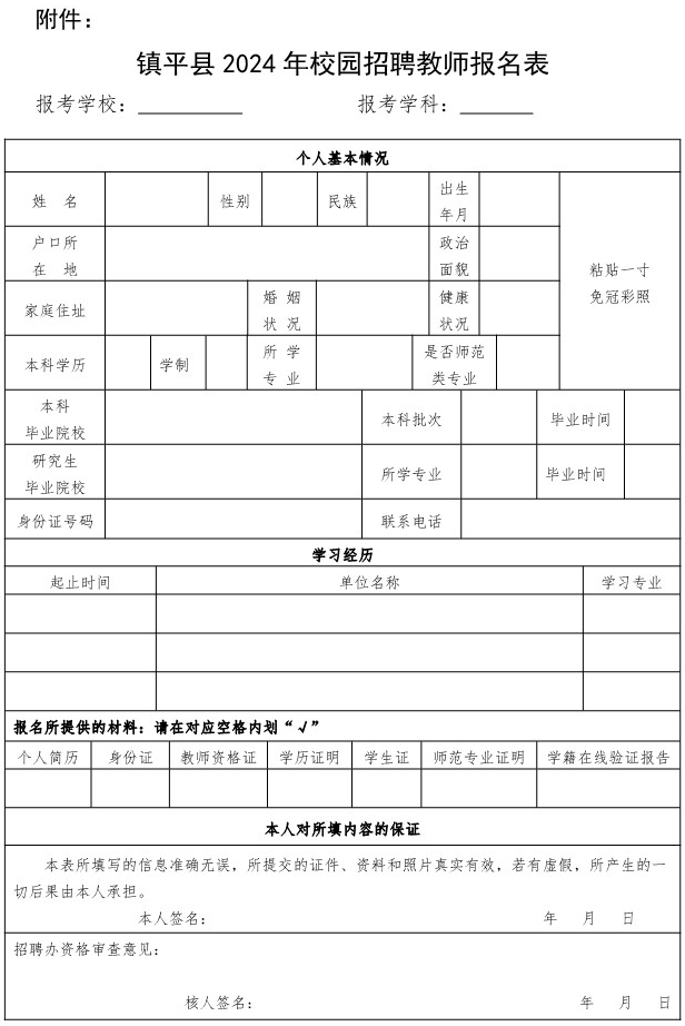 附件:鎮(zhèn)平縣2024年校園招聘教師報(bào)名表.docx