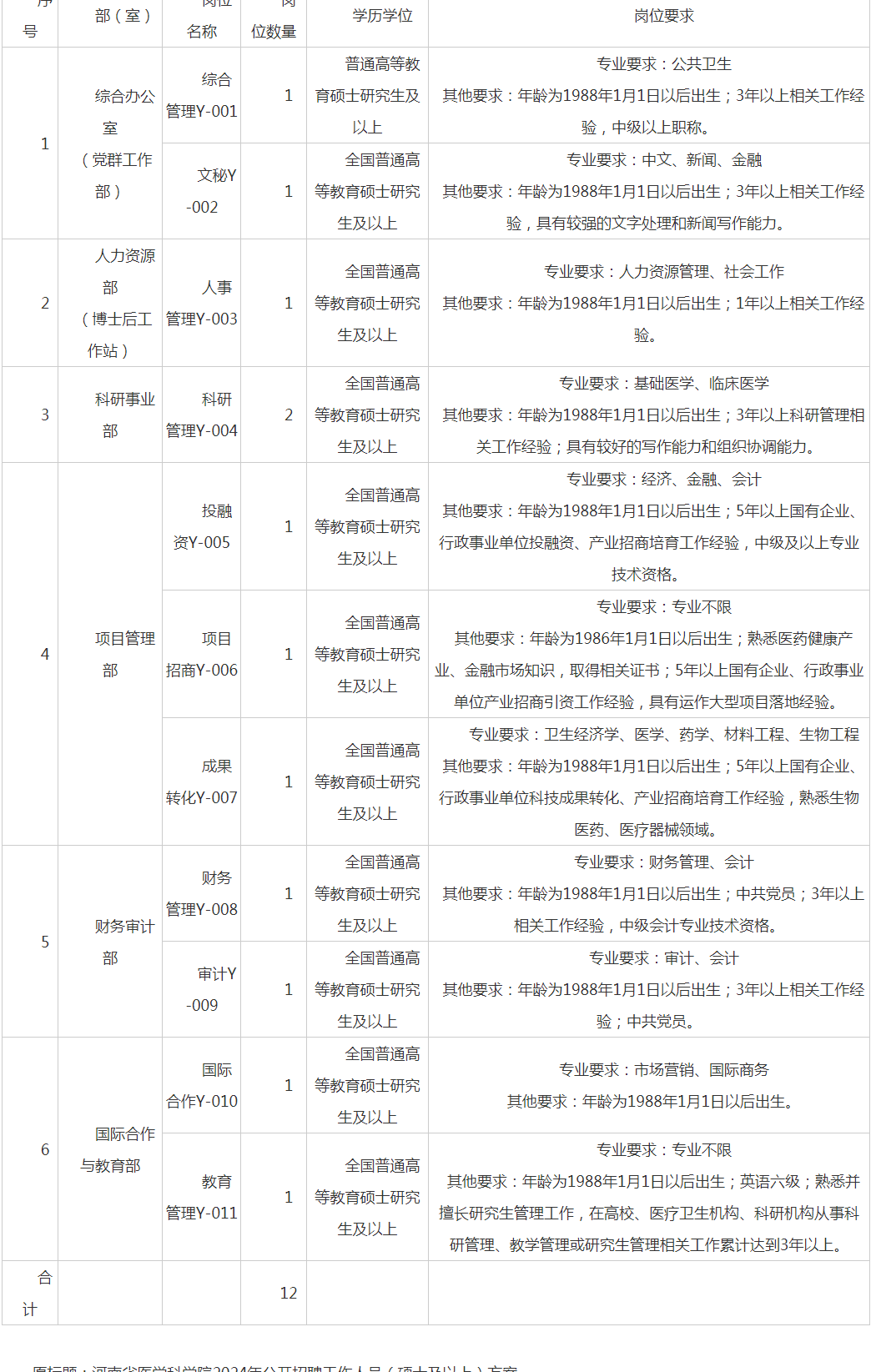 附件:1. 河南省醫(yī)學(xué)科學(xué)院2024年招聘崗位需求表
