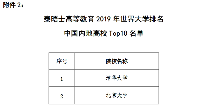 2.泰晤士高等教育2019年世界大學排名中國內地高校排名Top10名單