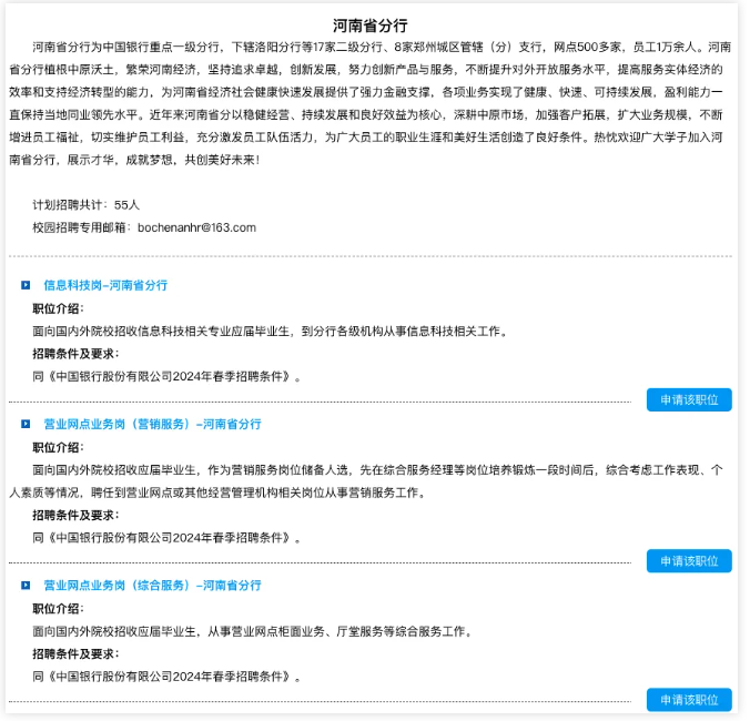 根據(jù)業(yè)務(wù)發(fā)展需要,中國(guó)銀行啟動(dòng)2024年春季招聘,相關(guān)信息公告如下: