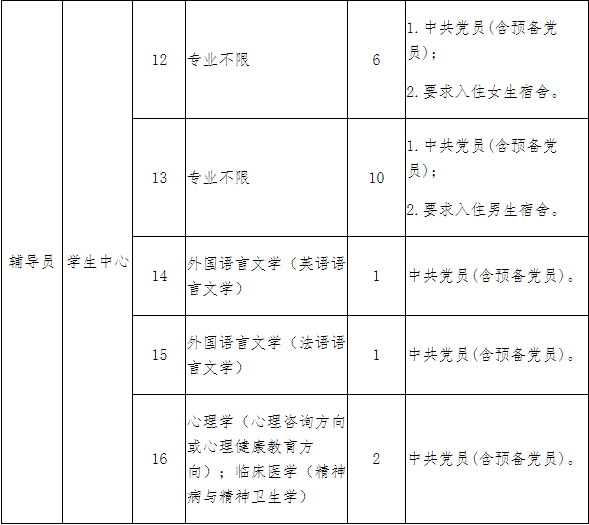 7.輔導員崗位招聘2022年、2023年、2024年畢業生,要求年齡在30歲以下(1994年1月1日及以后出生);