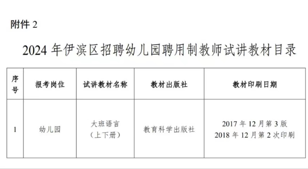 附件2:2024年伊濱區招聘幼兒園聘用制教師試講教材目錄