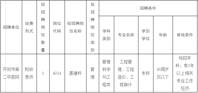 2024年開封市第二中醫院公開招聘工作人員計劃匯總表二(非醫學類)