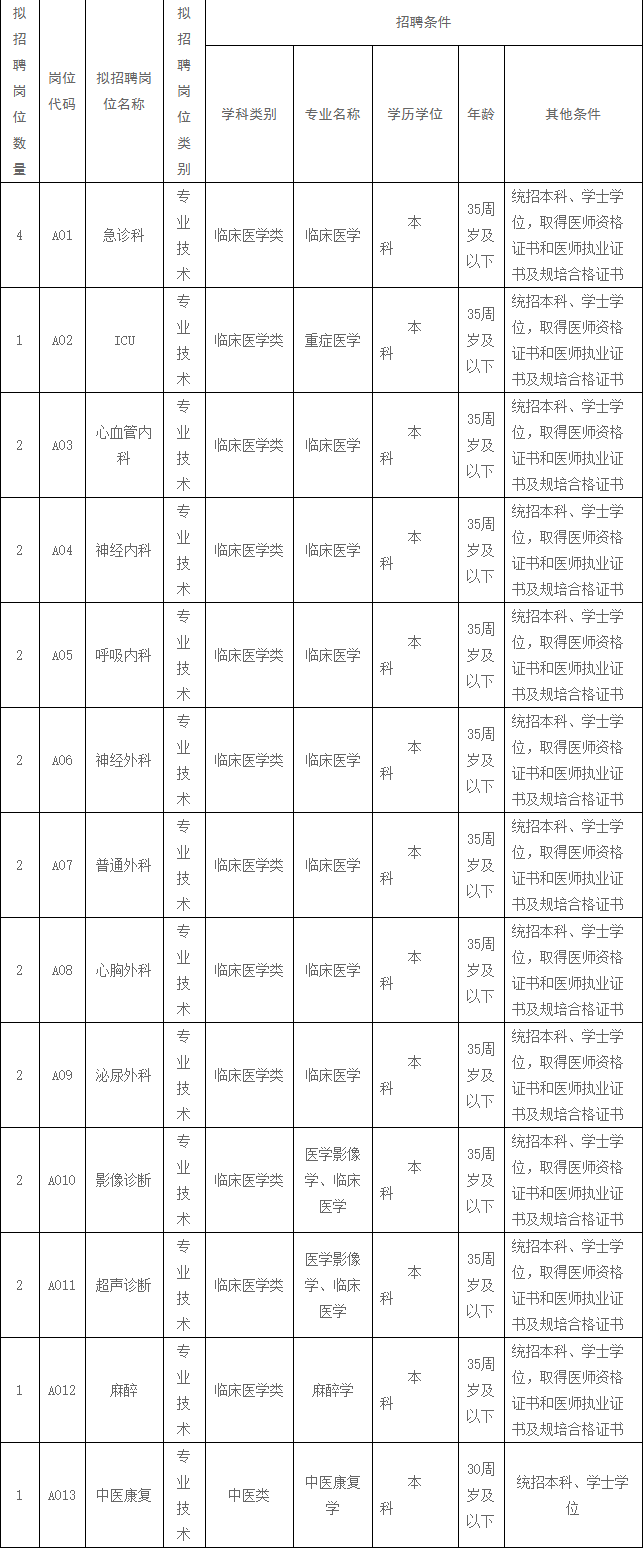 2024年開封市第二中醫院公開招聘工作人員計劃表(本科醫學類)