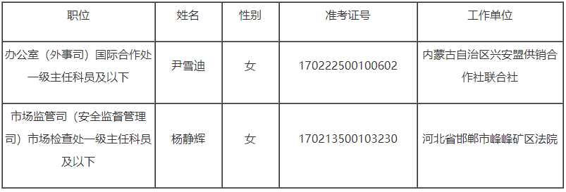 根據2024年度中央機關公開遴選和公開選調公務員工作有關要求,經過筆試、面試、體檢和考察等程序,確定尹雪迪、楊靜輝2名同志為我單位2024年度公開遴選公務員擬任職人員,現予以公示。公示期間,如對人選有異議,可向國家郵政局人事司反映。