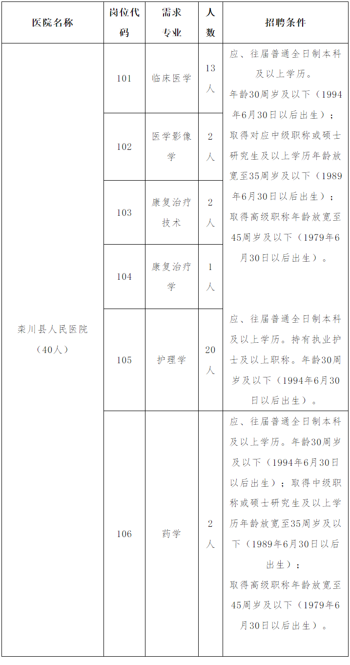 為進一步加強醫療衛生人才隊伍建設,滿足縣域人民群眾醫療服務需求,現根據實際工作需要,面向社會公開招聘醫療衛生專業技術人員,現將招聘信息公告如下: