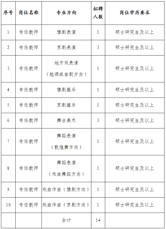為推進河南大學河南戲劇藝術學院建設,根據《河南省事業單位公開招聘工作規程》(豫人社〔2015〕55號)規定,我院擬面向社會公開招聘工作人員14名,現制定本招聘方案。